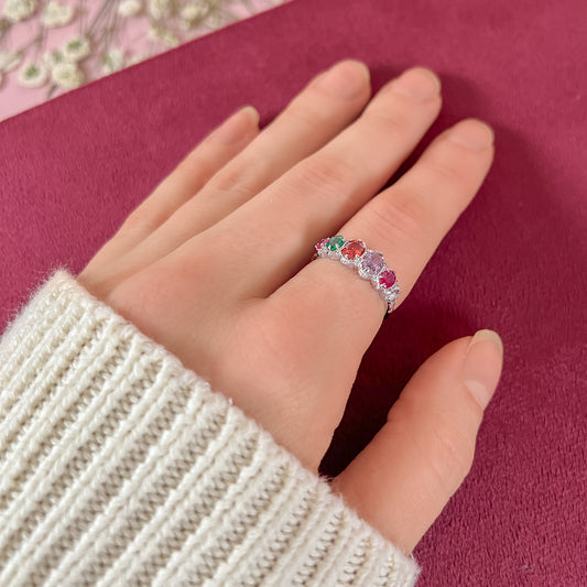 A modern revival of a Victorian tradition, the Regard Collection celebrates devotion, love, and timeless elegance. Each piece carries a secret message: the first letter of each gemstone—Ruby, Emerald, Garnet, Amethyst, Ruby, Diamond—spells “REGARD,” capturing the romance and sentiment of an era where jewelry was a language of the heart.