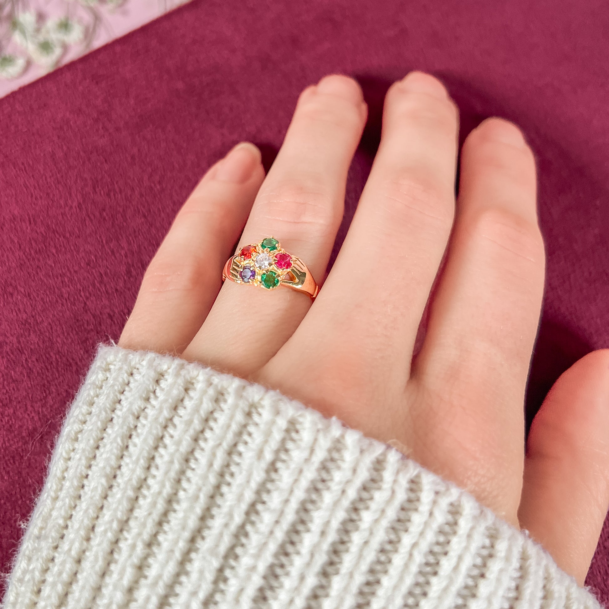 There are symbols of love and then there are tokens. The Regard Bloom Ring is a quiet echo of the Victorian tradition — a secret language spelled in gemstones, worn only by those who understood its meaning. Six stones, arranged in a petite floral constellation, whisper a message that once lived in love letters and hidden exchanges.