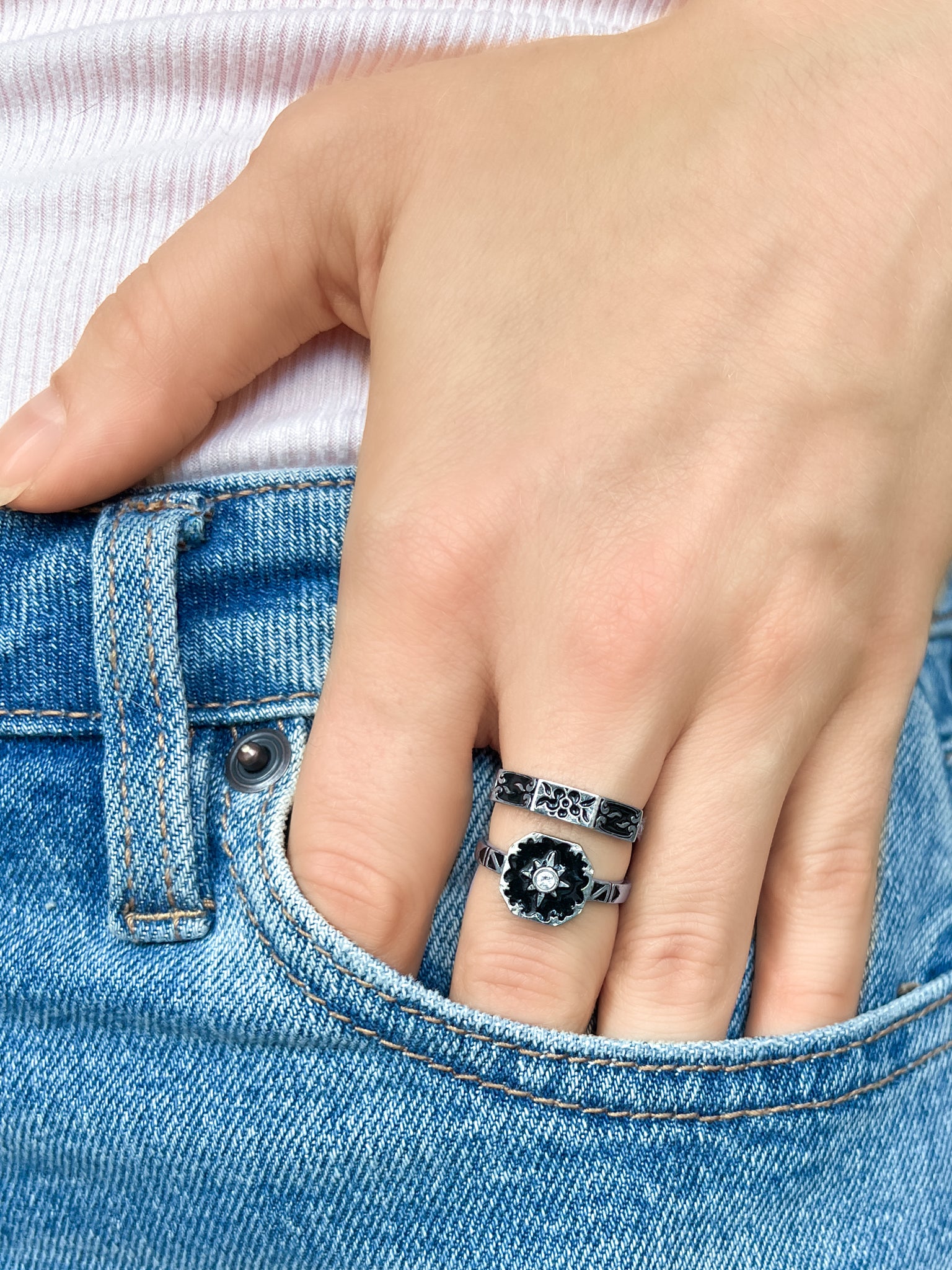 The smooth band balances substance with ease, allowing the intricate face to sit comfortably on the hand. Elegant, mysterious, and unforgettable, this piece recalls the grace of Victorian mourning jewelry. Crafted for everyday comfort and perfect for stacking. Stack it with the Nocturne Ring for an even more enchanting look.