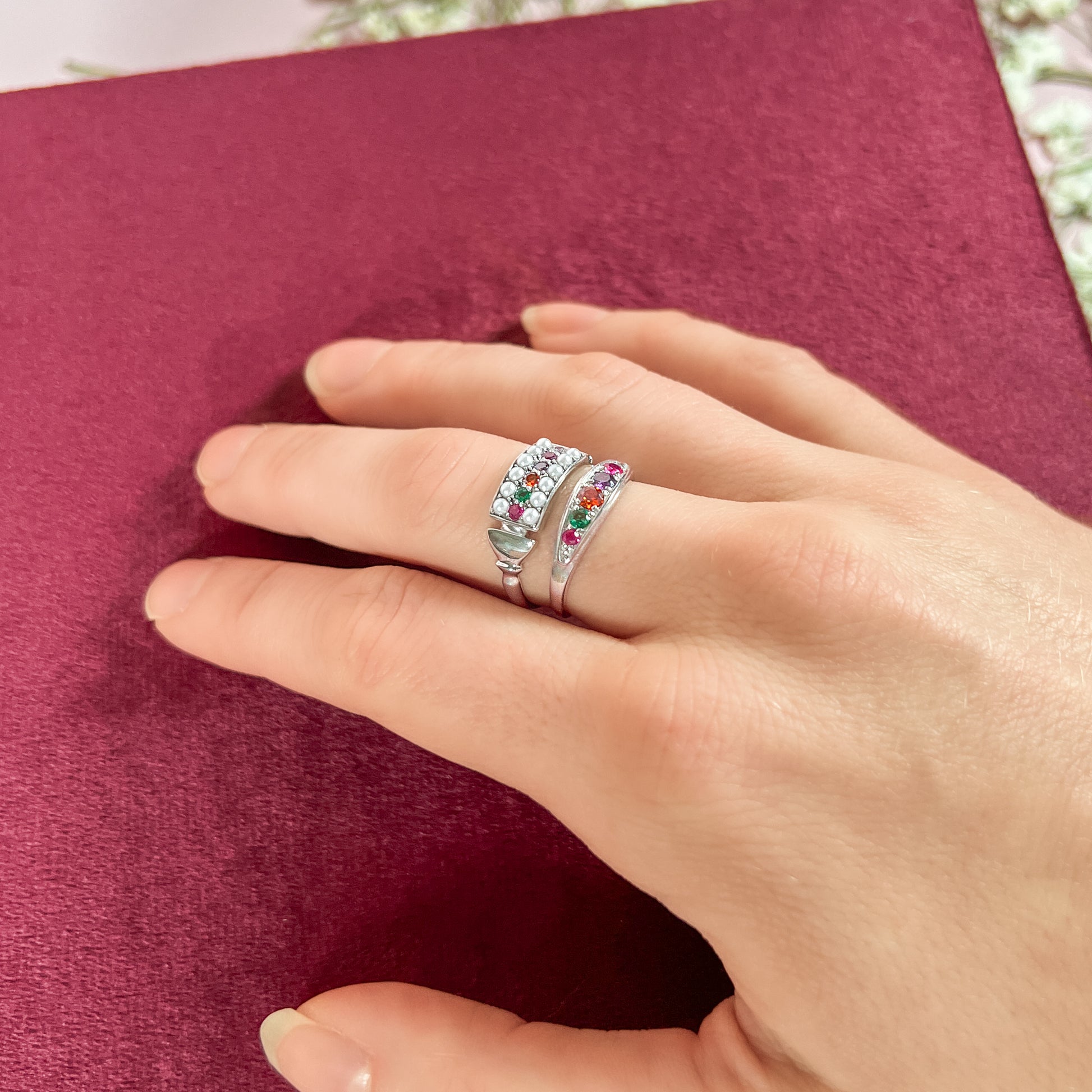 Some pieces feel royal the moment they touch your skin. The Regent Regard Ring is inspired by the opulence of French heirlooms — jewelry once worn in gilded courts, passed through generations, and treasured for the messages hidden within their stones. Six gemstones form the classic Victorian “REGARD” motif, framed in a silhouette that feels both historic and unmistakably modern.