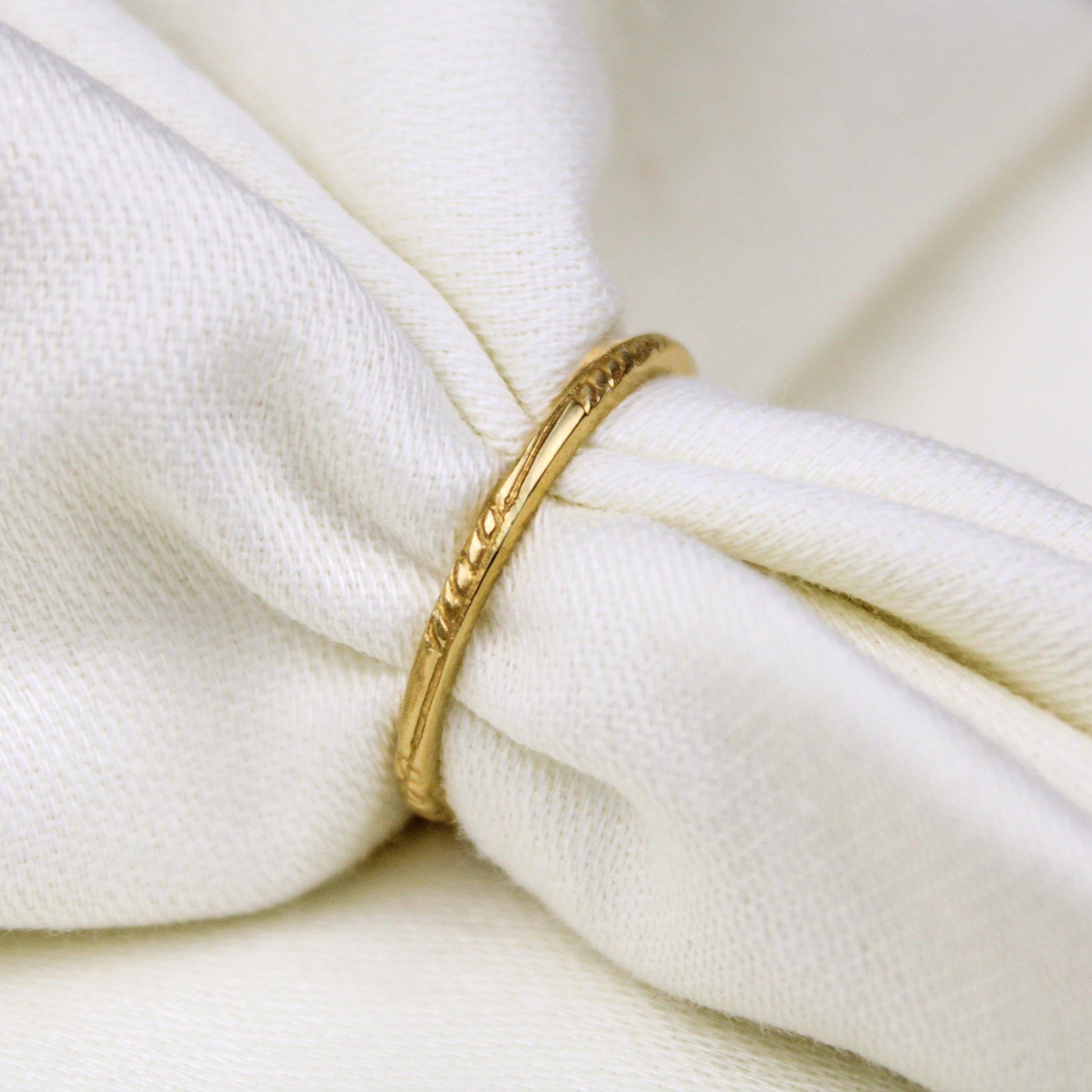 Soft, romantic, and a little enchanted — this slim engraved band feels like something plucked from a fairy tale. It’s subtle enough for everyday wear, yet detailed enough to feel like a treasure you discovered in an antique shop.